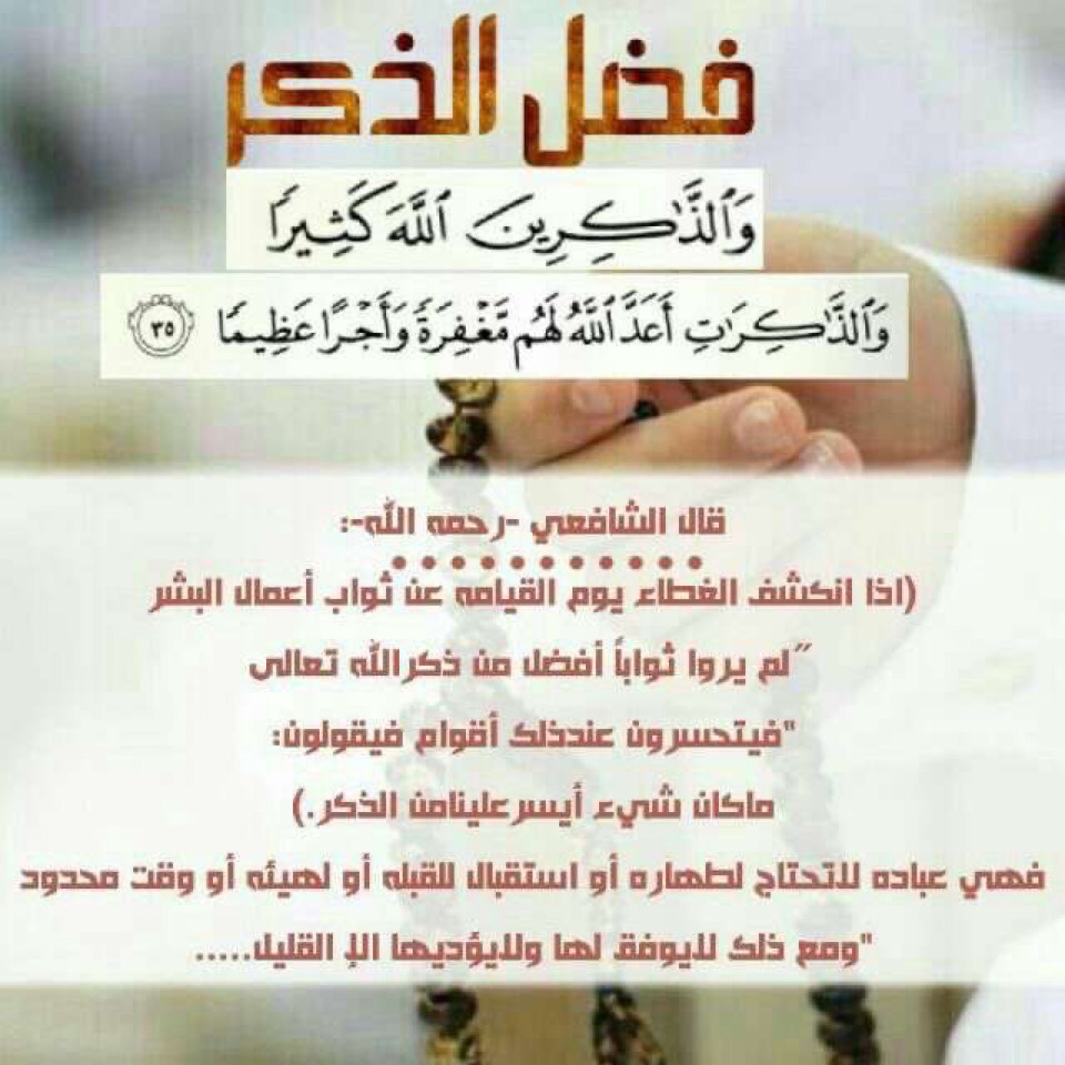 ترك الفحش من القول ، والغيبة والنميمة . وقاية العبد من حسره يوم القيامه تحقيق السعادة للذاكر ، والمباركة في عمره تحقيق النور في الدنيا والآخرة . سهولة الذكر وتيسييره للعبد ، ولو كان في فراشه . عدل .الذكر لعتق الرقاب والجهاد في سبيل الله تحقیق شكر الله سبحانه جلاء قسوة القلب